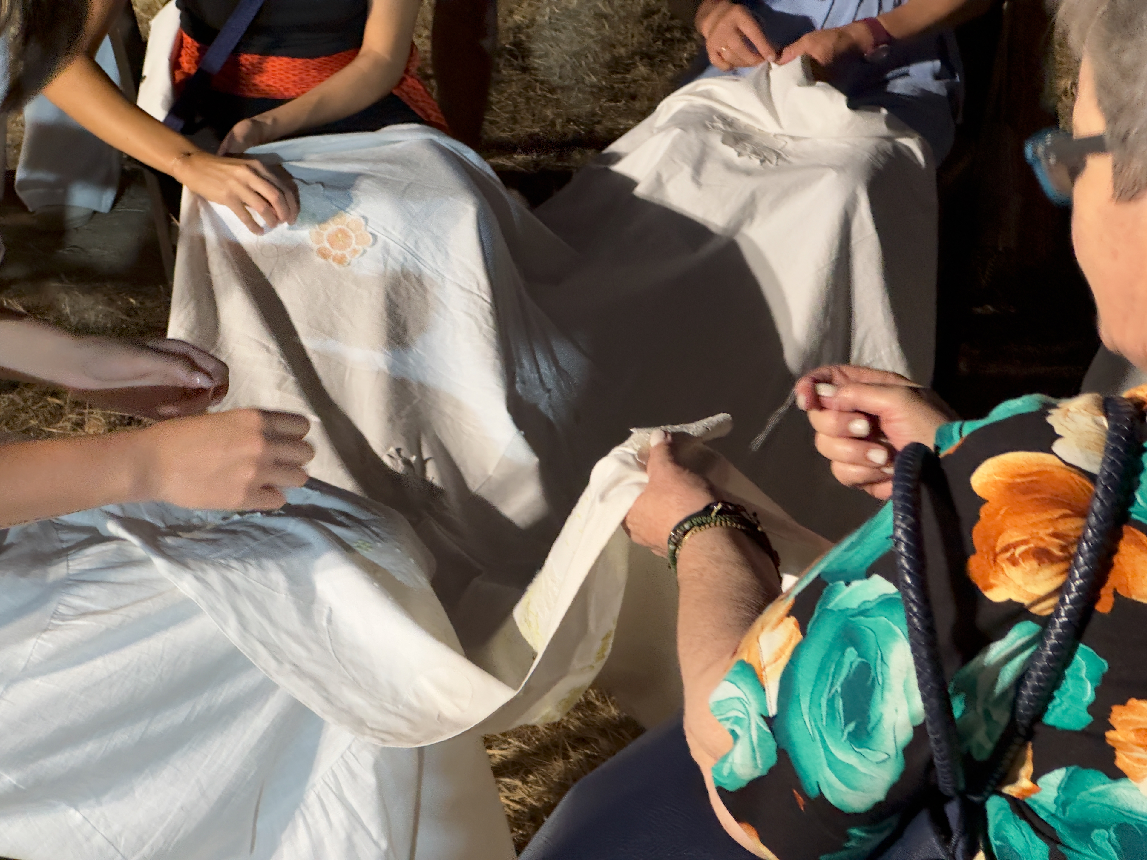 Through acts of sewing, conversation, and collective making, Sewing in a Field explores extractivism, cultural sustainability, and ecological relationships to land and labour. By situating craft within an active agricultural landscape, the project foregrounds community knowledge and participation as critical methods, using textile practice and film to document, honour, and sustain lived experiences embedded in place.